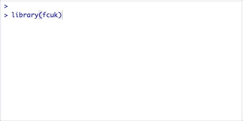It will be more efficient to add this library to your Rprofile. You can use fcuk::add_fcuk_to_rprofile() to do so. Then, any time you launch your R project, fcuk will be launched at the same time.