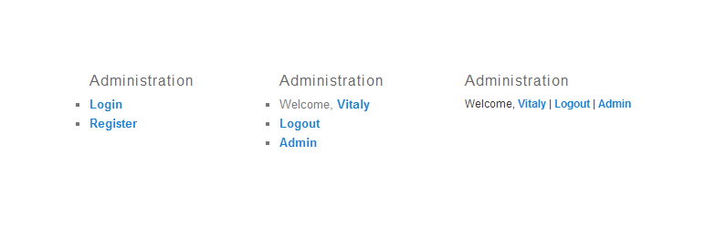- Added “login text”, “logout text”, “register text” and “site admin text” options