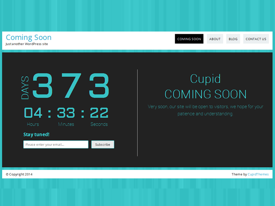 A Very simple and basic yet very beautifully designed theme. Countdown features standard code which allows easy editing. IT comes with options framework which allows easier setup and back-end functionality to customize the theme. You just have fill in the fields and you’re ready to rock n roll. It can be used as Underconstruction Theme, Countdown Theme for an event or website launch, It can also be used as Donation pool Counter. The applications are unlimited and the solution is “CountDown” Theme. Have fun using it.