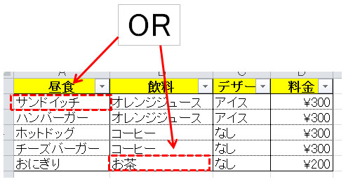 そこで、ここで条件2の列の検索条件を先程の「条件3:お茶→オレンジジュース」に変更してみたいと思います。