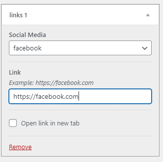For the first link i.e, the Facebook link, choose “Facebook” from the Social Media dropdown menu.