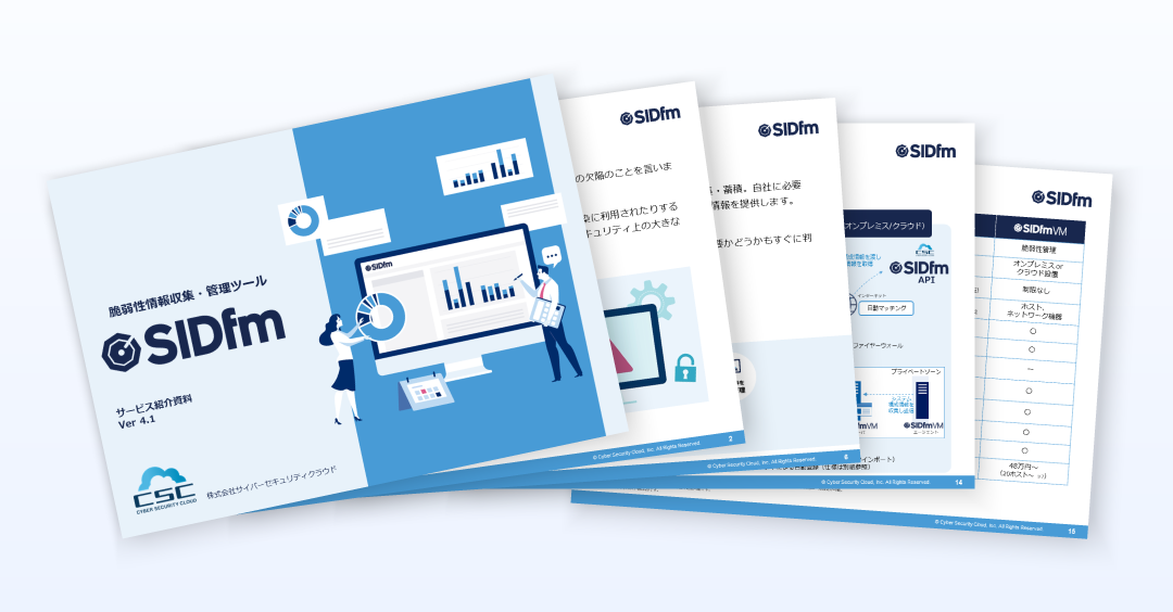 脆弱性情報収集・管理ツール「SIDfm」のサービス全般がわかる資料をダウンロードいただけます。
