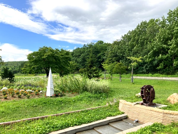 小さな広場には花壇やミニ水車が設えられていました。