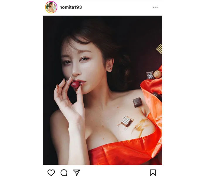 いくみ、バレンタインショットで、片方のブラを外し、