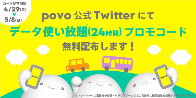 povo、「データ使い放題24時間」の無料キャンペーン実施中