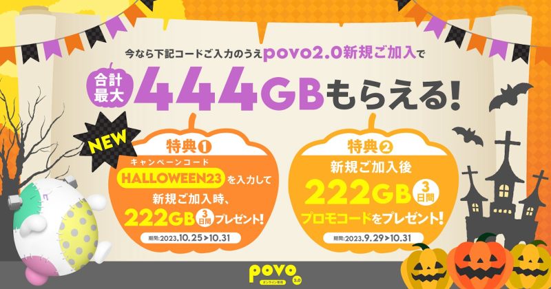 povo2.0、新規加入で最大444GBのデータがもらえるキャンペーンをスタート