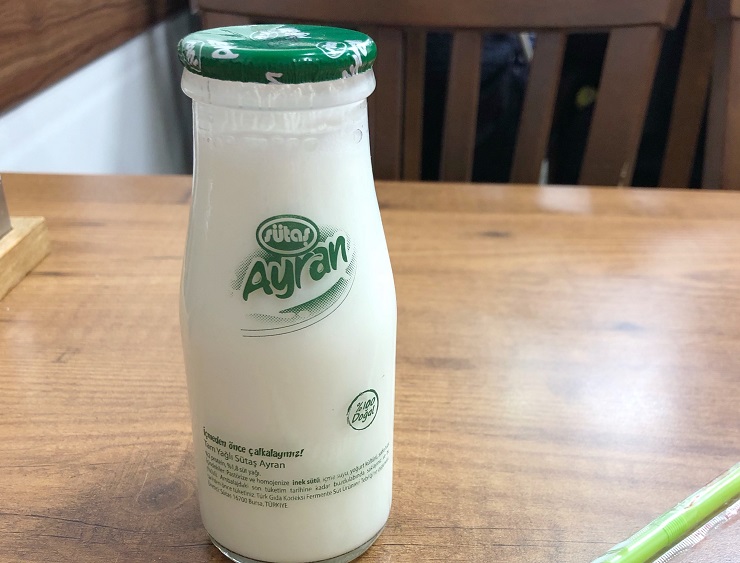 そして、こういった肉系の料理をトルコで食べるときに欠かせないのがアイランという飲み物。ヨーグルト飲料ですが、塩分が入っているのが特徴で甘ったるくありません。さらさらとした飲み心地は、思ってのほかに肉料理や揚げ物とよく合います。これを機会に、トルコらしい食べ物と飲み物の組み合わせに挑戦してみるのもいいかもしれません。