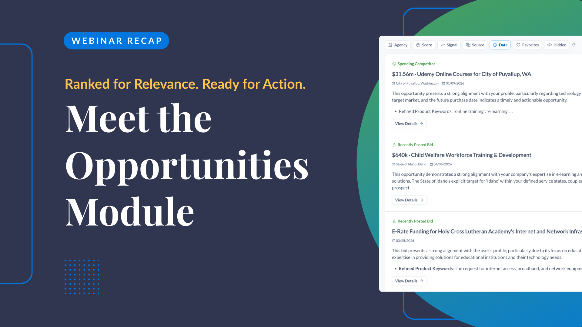 For financial institutions and consultants operating in the public sector, insight into your client’s procurement landscape is essential. With spending intelligence for both the federal and SLED sectors, you have the market analysis tools you need to pinpoint potential new clients, nurture and delight existing ones, and build a reputation for strategies that win.