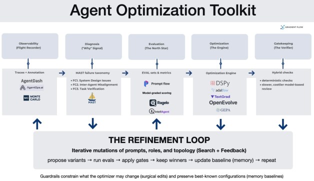 A practical toolchain is emerging that makes the loop more systematic: instrument the workflow, diagnose failures, evaluate variants, and then use search or automated refinement to improve prompts and architecture — while adding guardrails so the optimizer can’t “cheat.”