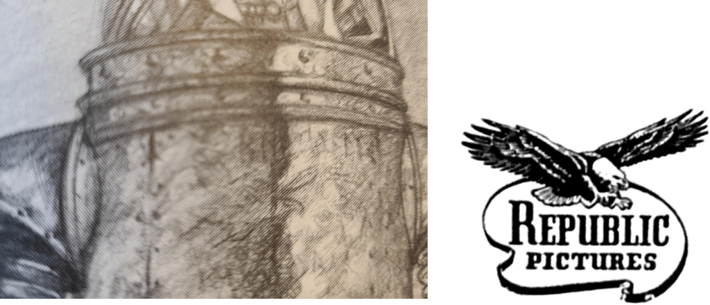 In the original printing, you can barely make out a fragmentary eagle image on the robot’s chest, with Dwarf runes above it that spell out part of the name ‘Republic Pictures.’