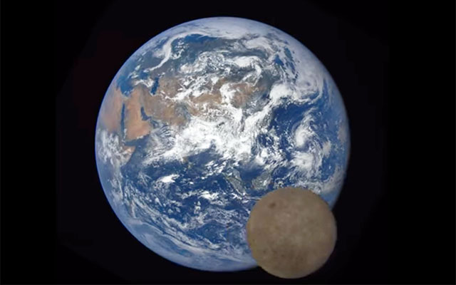 半年に1度の貴重な瞬間! 人工衛星が捉えた「月が地球に写り込む写真」をNASAが公開