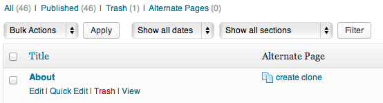 Create alternate versions from the posts table using the “create clone” button