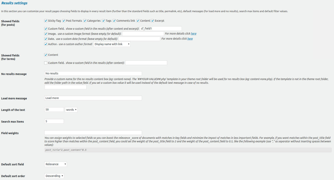 - Added field weightings management