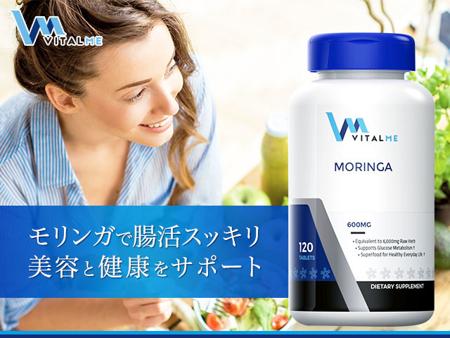 VitalMe(バイタルミー)モリンガは、その栄養価の高さから、「生命の木 (Tree of Life)」とも異名を持つモリンガの葉エキスを、2粒あたり600mg(10倍濃縮により、濃縮前換算6,000mgに相当)含んだサプリメントです。エイジングケアによる美容への有用性をはじめ、生活習慣の改善、ダイエット、お通じケアなど様々な働きが期待できます。