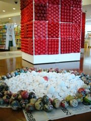 会場中央には、石膏などによるリンゴも置かれ、中央に1個だけ本物のリンゴがあります。