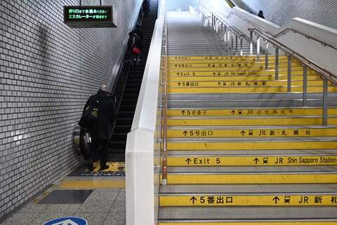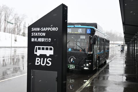 新さっぽろ駅から、Fビレッジ行きのバスに乗るには、5番出口から行きましょう。