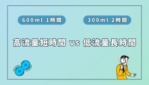 理想は「高流量で長時間」であることを前提としつつ、どちらか選ぶ必要がある場合は、「低流量で長時間」を当サイトではおすすめしています。