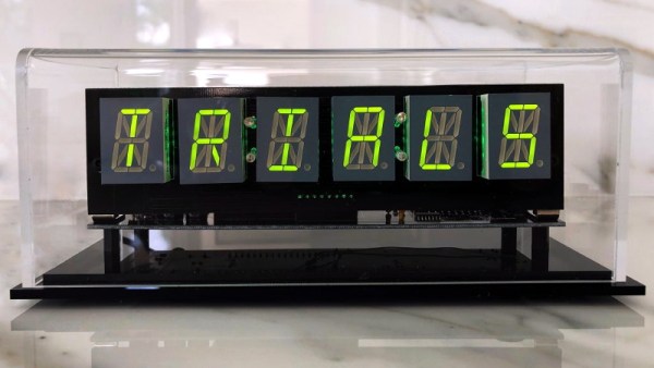 We love that [CrazyRobMiles] went with four 14-segment displays, which gives it a nice old school feel, but used transparent keycaps over Kailh switches. This is actually important, because not only do the LEDs show what mode you’re in (alpha vs. numeric vs. symbols), they also teach you how to chord each letter in the special training game mode. Be sure to check it out in the video after the break.