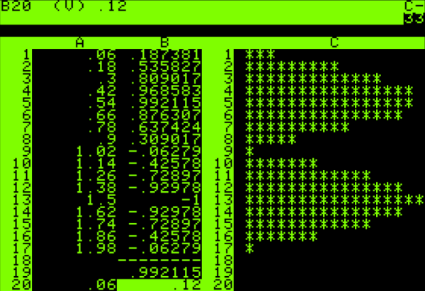 It is hard to remember a time when no one had a spreadsheet. Sure, you had big paper ledgers if you were an accountant. But most people just scribbled their math on note paper or, maybe, an engineering pad. [Christopher Drum] wanted to look at what the state of the art in 1978 spreadsheet technology could do. So he ran VisiCalc.