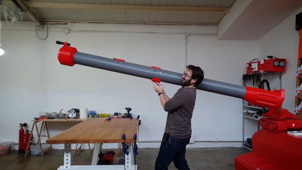 It’s an intimidating device, to be sure. However, we suspect its short range, huge size, and slow reload time should stop it from breaking the meta-game at your local Nerf battles. That said, we still wouldn’t want to take a shot from this bad boy to the head. Hackers do love a good Nerf build, and they’re particularly popular in sentry applications. Video after the break.