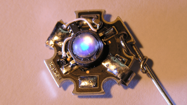 What [Manuka] gives us is a circuit that is designed to be built into your project or project’s power supply. Using only an ultra-bright white LED, red blinking LED, PNP transistor, and a diode, the circuit gives a strong visual indication of current consumption by blinking brighter and more frequently as current increases. With a bit of calibration, accurate measurements can be obtained. All of this is made possible by using the Flashing LED as a driver for the ultra-bright LED, which is a pretty slick hack!