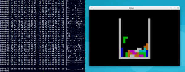 If you want to give it a try for yourself, all you need is NASM and QEMU — and while you’re at it, why not have some Tetris along the way? We could also see this nicely combined with the real-world jumping version from a few weeks back, and turn it into a standalone arcade game. Bounce Crouch Revolution anyone?