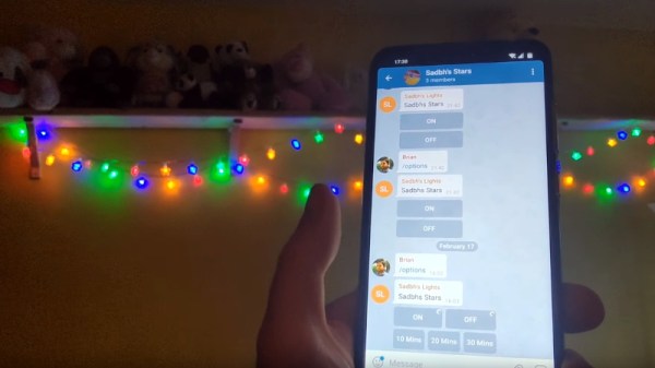 It would be fair to say that there’s no clear-cut “right” way to approach the software, and it really depends on the needs or limitations of your particular project. For example [Brian Lough] finds that building Telegram support into his ESP8266 allows him to accomplish his goals with the minimum amount of fuss while at the same time using an environment he’s already comfortable with. He recently wrote in to share one of his Telegram projects with us, and in the video after the break, takes the time to explain some of the things he likes best about controlling his hardware through the encrypted chat platform.