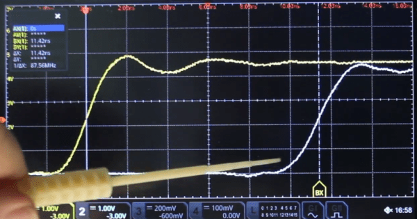In the first video below, [Gregg] built a simulated ham shack using a 100-MHz signal generator and a length of coaxial feedline. Using a toroidal ferrite core with a couple of turns of magnet wire and a capacitor as a current probe for his oscilloscope, he was unable to find a trace of the signal on the shield even if the feedline was unterminated, which produces the impedance mismatch that the chatbots thought would spell doom. To bring the point home, [Gregg] created another test setup in the second video, this time using a pair of telescoping whip antennas to stand in for a dipole antenna. With the coax connected directly to the dipole, which creates an unbalanced system, he measured a current on the feedline, which got worse when he further unbalanced the system by removing one of the legs. Adding a balun between the feedline and the antenna, which shifts the phase on each leg of the antenna 180° apart, cured the problem.