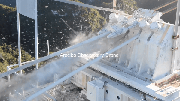 But why did the sockets fail? As the report points out, spelter sockets are commonly used to anchor cables that support heavy loads under conditions similar to the tropical climate at Arecibo. After ruling out every other cause, the committee was left with the conclusion that Arecibo itself may have been to blame for the accelerated zinc creep, thanks to electrical currents induced in the cables and sockets when the telescope’s powerful transmitters were used. They call this “long-term, low-current electroplasticity.” Electroplastic effects have been observed since the 1950s, and while far from certain that’s what happened here, the thought is that skin-effect currents induced in the support cables flowed to ground through the zinc sockets, increasing the plasticity of the metal and accelerating the zinc creep that ultimately led to collapse.
