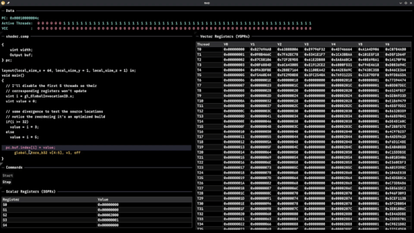 Writing a debugger is usually a tricky business anyway. Working with the strange GPU architecture makes it even stranger. Traps let you gain control, but implementing features like breakpoints and single-stepping isn’t simple.