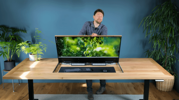 Beehives are impressive structures, an example of the epic building feats that are achievable by nature’s smaller creatures. [Full Stack Woodworking] was recently building a new work desk, and decided to make this piece of furniture a glowing tribute to the glorious engineering of the bee. (Video, embedded below.)