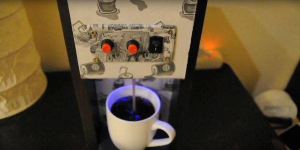 This bar-clock can dispense beverages with up to four different spirits and four mixers, and takes orders over voice, keyboard, or web-controls. A belt-driven drink loading platform pushes out through a spring-loaded door and once the vessel is in place and the order received, peristaltic pumps dispense the spirits while servos open taps for the mixers — a far easier method to administer the often carbonated liquids. A Raspberry Pi acts as this old-timer’s brain, an Arduino controls the lights, and a HAT to controls the servos. Here’s a more in-depth tour of what’s going on behind the bar, but check out the video after the break for a full run through of a few drink orders!