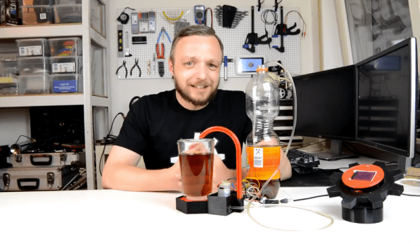 We’ve certainly seen plenty of automatic drink makers, but those are more suited to parties and complicated drink mixing. This beverage dispenser is more for the person who knows their tastes and simply wants to save some time. It’s also much simpler, using a peristaltic pump for serving a single liquid from a large bottle into a glass, and using a load cell to know when to stop filling. The peristaltic pump is a little slow though, so it’s best to set the glass back in the dispenser and let it top you off each time.