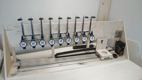 [_Pegor] wanted to create a shot pouring machine for their friends birthday. Unfortunately, the build wasn’t done in time, but at least the JagerMachine is finished now so that others can use it.
