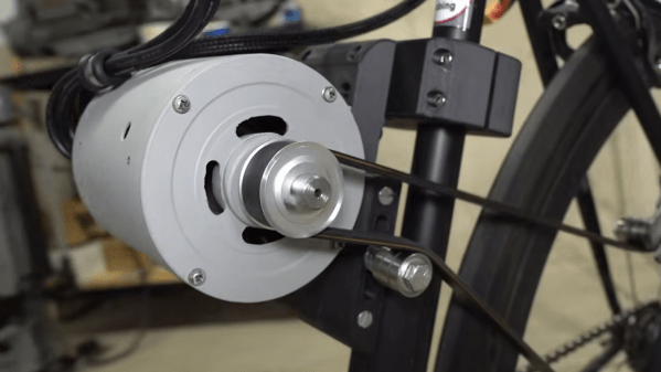 The project began as a fun weekend project for friends [Sam Barker] and [Tom Stanton]. They had a 20″ BMX wheel with a massive integrated hub motor that seemed to be begging to be put onto a BMX bike that they had on hand. After hooking up a 72V, 20Ah battery to it they were quickly zipping around the driveway, but the short wheelbase on the bike was bottlenecking its maximum performace because the bike would wheelie under high throttle. To solve that, they broke out the welder and extended frame, which kept the wheelies to a minimum and allowed them to take it out and drag race.