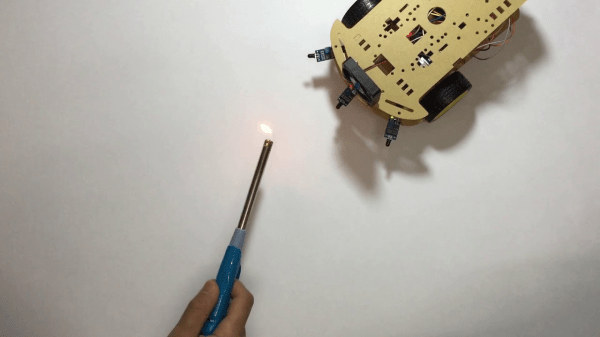 Fighting fire with robots may take jobs away from humans, but it can also save lives. [Mell Bell Electronics] has built a (supervised) kid-friendly version of a firefighting robot that extinguishes flames by chasing them down and blowing them out.