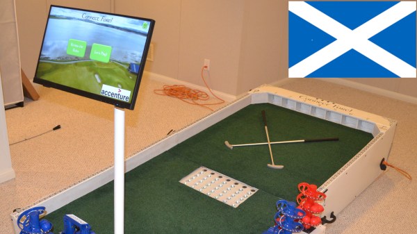Any golfer will attest that the most impressive looking part of the game—long drives—isn’t where the game is won. To really lower one’s handicap the most important skills to develop are in the short game, especially putting. Even a two-inch putt to close out a hole counts the same as the longest drive, so these skills are not only difficult to master but incredibly valuable. To shortcut some of the skill development, though, [Sparks and Code] broke most rules around the design of golf clubs to construct this robotic putter.