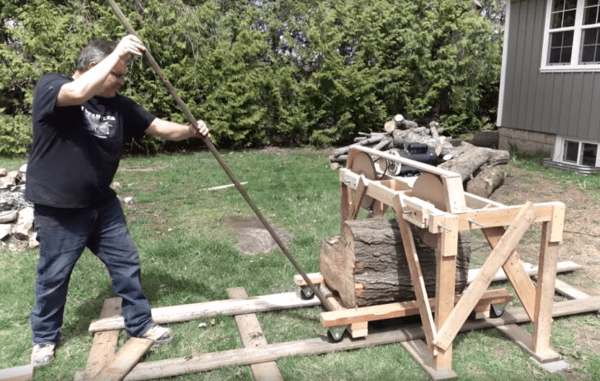 When a questionable tree threatened his house, [John Heisz] did the sensible thing and called in a professional to bring it down. But with a flair for homebrew tools, [John] followed up with a seemingly non-sensible act and built a quick and dirty DIY bandsaw mill to turn the resulting pile of maple logs into usable lumber.