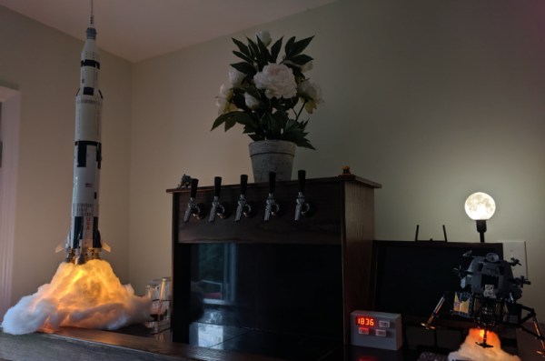 In his write-up on Hackaday.io, [Ben] makes it clear that he was inspired by previous projects that added an illuminated column of smoke under the LEGO Saturn V, but we think his additions are more than worthy of praise. Playing real audio from the Apollo missions that’s synchronized to the light show honestly makes for a better display than we’ve seen in some museums, and he even rigged up a wireless link so that his neighbor’s kids can trigger a “launch” that they can watch from their window.