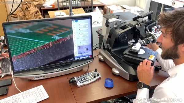 It’s relatively easy to understand how optical microscopes work at low magnifications: one lens magnifies an image, the next magnifies the already-magnified image, and so on until it reaches the eye or sensor. At high magnifications, however, that model starts to fail when the feature size of the specimen nears the optical system’s diffraction limit. In a recent video, [xoreaxeax] built a simple microscope, then designed another microscope to overcome the diffraction limit without lenses or mirrors (the video is in German, but with automatic English subtitles).