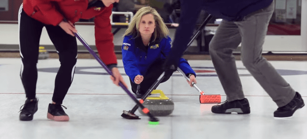 If you’ve been watching the Olympics, you’ve probably seen some curling, the Scottish sport of competitively pushing stones on ice. As the name implies, curling stones don’t go straight. The thrower pushes them with a bit of rotation, and the stones curve in the direction they are rotating. This is exactly the opposite of what one would expect — try it yourself with an inverted drinking glass on a smooth table. The glass will curl opposite the direction of rotation. Clockwise spin will result in a curl to the left, counterclockwise in a curl to the right.