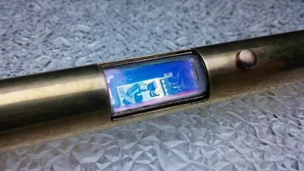 The build is an attractive one, with the pointer chassis being manufactured out of brass, with several components plated in yellow and rose gold. There’s even a sliding window to observe the laser cavity, which glows brightly in operation. [Zenodilodon] goes into great detail during the machining process, showing all the steps required to produce a visually appealing device.