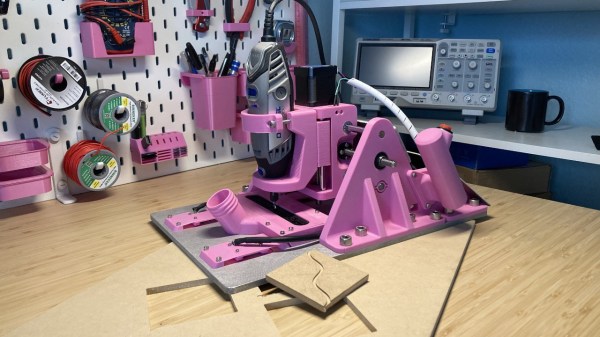 But what if you deleted the traditional motion system, and instead let the cutting tool roam freely? That’s the idea behind the open source Compass Handheld CNC. Looking a bit more like a combat robot than a traditional woodworking tool, the Compass tracks its movement over the workpiece using a Teensy 4.1 microcontroller and four PMW3360 optical flow sensors. With a pair of handles that look like a flight yoke and a display that shows the router’s current position versus where it should be, the user can “drive” the tool to cut or carve the desired design.