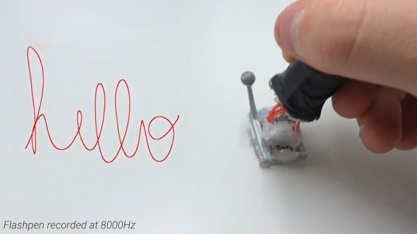 The fundamental technology behind the pen is simple, with the device using an optical flow sensor harvested from a high-end gaming mouse. This is a device that uses an image sensor to detect the motion of the sensor itself across a surface. Working at an update rate of 8 KHz, it eclipses other devices in the market from manufacturers such as Wacom that typically operate at rates closer to 200Hz. The optical sensor is mounted to a plastic joint that allows the user to hold the pen at a natural angle while keeping the sensor parallel to the writing surface. There’s also a reflective sensor on the pen tip which allows cameras to track its position in space, for use in combination with VR technology.