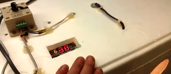A fresh egg taken from beneath a slumbering hen is something to which the taste of a supermarket equivalent rarely compares. The satisfaction of having a contented flock does come at a price though, in the form of constant monitoring and husbandry of your poultry’s well-being. It’s a problem that [hms-11] has tried to address with CoopCommand, a system to automate the monitoring of and environment within a chicken coop. It controls a light to counteract for shorter winter days, warms their water when it’s cold, has a fan for cooling and ventilation on hot days, and a camera to keep any eye on them.