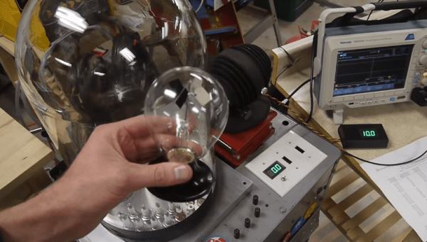 The process of creating such loud sounds burned out a number of speakers, so to prevent this, [Ben] monitored the temperature of a speaker coil at varying amounts of power. He realized that the resistance of the coil increased as it heated up, so by measuring its resistance, he could calculate the coil’s temperature and keep it from getting too hot. [Ben] also tested the radiometer’s performance when the chamber contained other gasses, including hydrogen, helium, carbon dioxide, and sulfur hexafluoride, but none worked as well as air did. It’s a bit counterintuitive that none of these widely-varying gasses worked better than air did, but it makes sense when one considers that speakers are designed to efficiently transfer energy to air.
