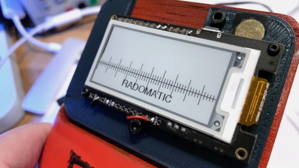 For this project [Hans] used a LilyGo T5, which combines an ESP32 with a 2.13 inch electronic paper display. These are presumably meant to be development boards for digital signage applications, but they occasionally show up in hacker projects since they’re so easy to work with. The board pulls data from a RD200M radon sensor over a simple UART connection, and the current reading is indicated by a “needle” that moves across a horizontal scale on the display.