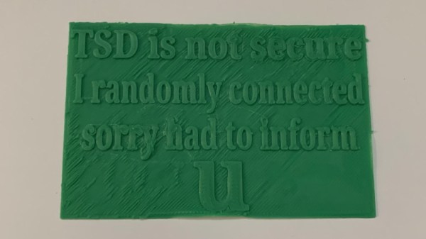 For the record, it appears no permanent damage was done, and everyone who was potentially impacted by this issue has been notified. There was a fairly narrow window of opportunity for anyone to stumble upon the issue in the first place, meaning any bad actors would have had to be particularly quick on their keyboards to come up with some nefarious plot to sabotage any printers connected to TSD. That said, one user took to Reddit to show off the physical warning their printer spit out; the apparent handiwork of a fellow customer that discovered the glitch on their own.