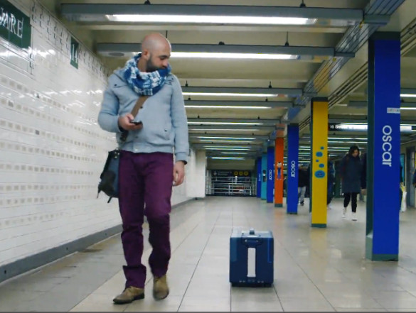 I have something that follows me around all the time: my dog Jasper. His cargo-carrying capability is limited, though, and he requires occasional treats. Not so this robotic suitcase. All it needs, the designers claim, is an occasional charge and a Bluetooth device to follow.