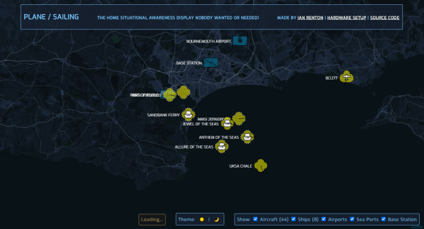 Software-defined radio came on the hacker scene in a big way less than a decade ago thanks to the discovery that a small USB-based TV tuner dongle could be used for receiving all kinds of radio transmissions. Two popular projects from that era are tracking nearby airplanes and boats in real time. Of course, these projects rely on different frequencies and protocols, but if you live in a major port city like [Ian] then his project that combines both into a single user interface might be of interest.